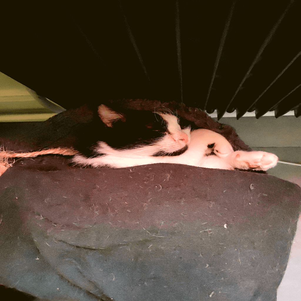 Pendant que certains bossent, d’autres, comme Musclor, profitent du radiateur.